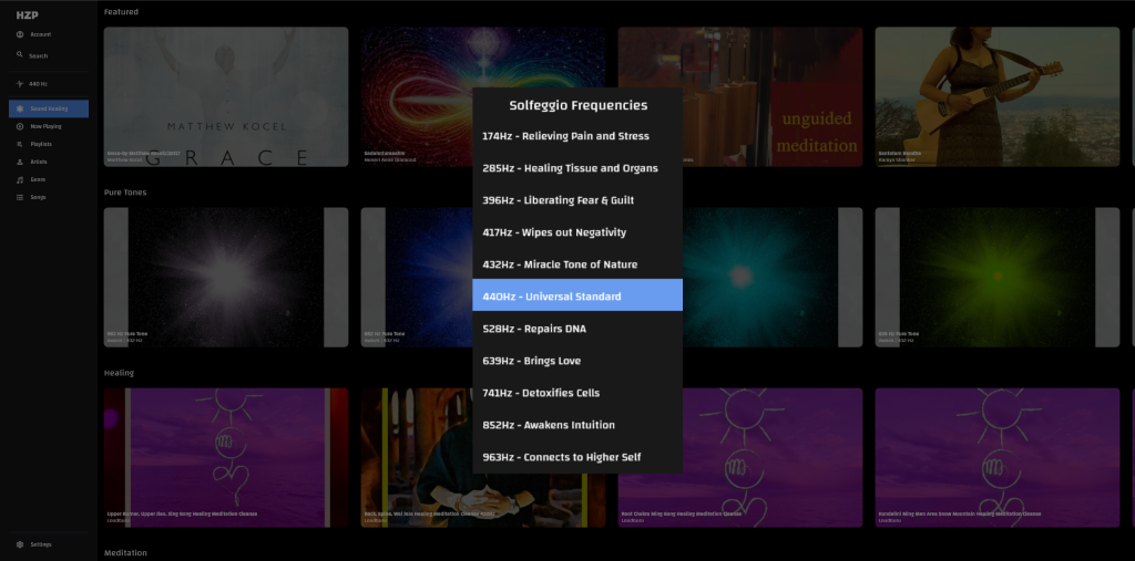 Pros: By far the easiest way to re-tune music to the Solfeggio Frequencies and 432hz. You have access to millions of songs via Audius, and you can upload your own tracks as well. HZP is free to use, however ad-supported. HZP is also available everywhere, through the webapp, mobile app, and more!
