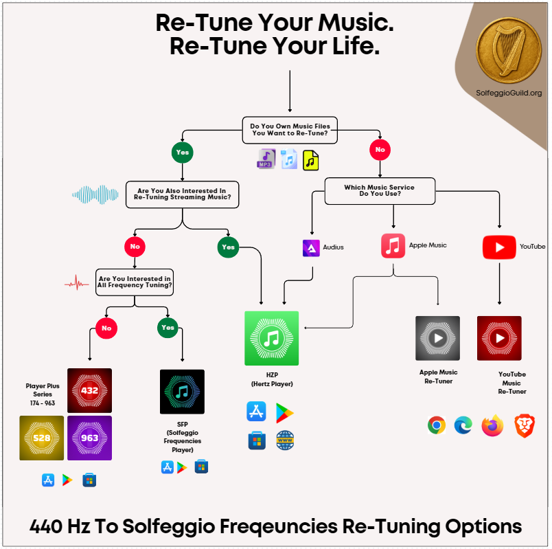 The only way to retune the tens of millions of songs hosted on YouTube and YouTube Music to any of the Solfeggio Frequencies & 432 Hz tuning in real time!